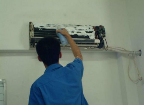 | 三江空调维修师傅给三江用户上门维修清洗空调。 |